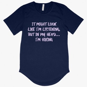 Men’s I Might Look Like I’m Listening T-Shirt with Curved Hem – Hiking Men’s T-Shirt – Sarcastic T-Shirt