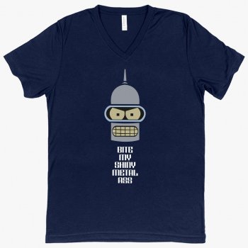 V-Neck Bite My Shiny Metal Ass T-Shirt – Bender T-Shirt – Futurama T-Shirt