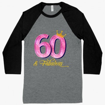 60 & Fabulous Baseball T-Shirt – 60th Birthday Ladies’ T-Shirts – T-Shirts for 60 Year Old Birthday