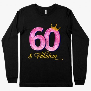 60 & Fabulous Long Sleeve T-Shirt – 60th Birthday Ladies’ T-Shirts – T-Shirts for 60 Year Old Birthday