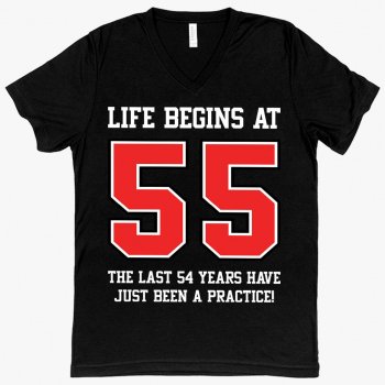 V-Neck Life Begins at 55 T-Shirt – 55th Birthday T-Shirts – 55 Year Old Birthday T-Shirt