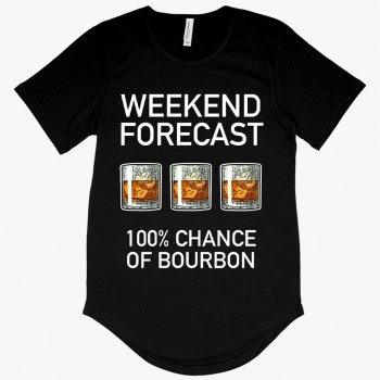 Men’s Weekend Forecast Bourbon Funny Drinking T-Shirt with Curved Hem – T-Shirt for Men