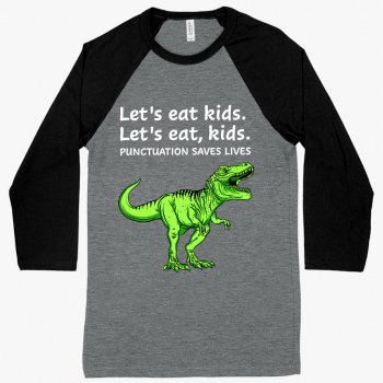 Punctuation Saves Lives Long Sleeve Baseball Dinosaur T-Shirt – Funny T-Shirt Designs