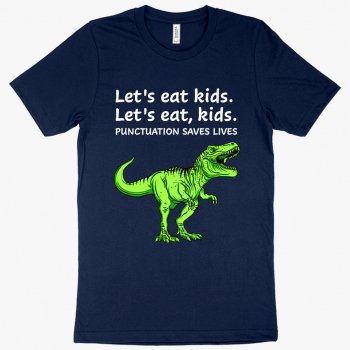Punctuation Saves Lives Dinosaur T-Shirt – Funny Dinosaur T-Shirt