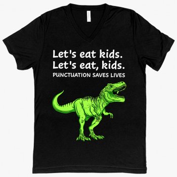 V-Neck Punctuation Saves Lives Dinosaur T-Shirt – Dinosaur Funny T-Shirt