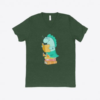 Dinosaur Reading Triblend V-Neck T-Shirt
