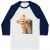 features raglan 3/4 sleeves and a modern fit that is perfect for a day